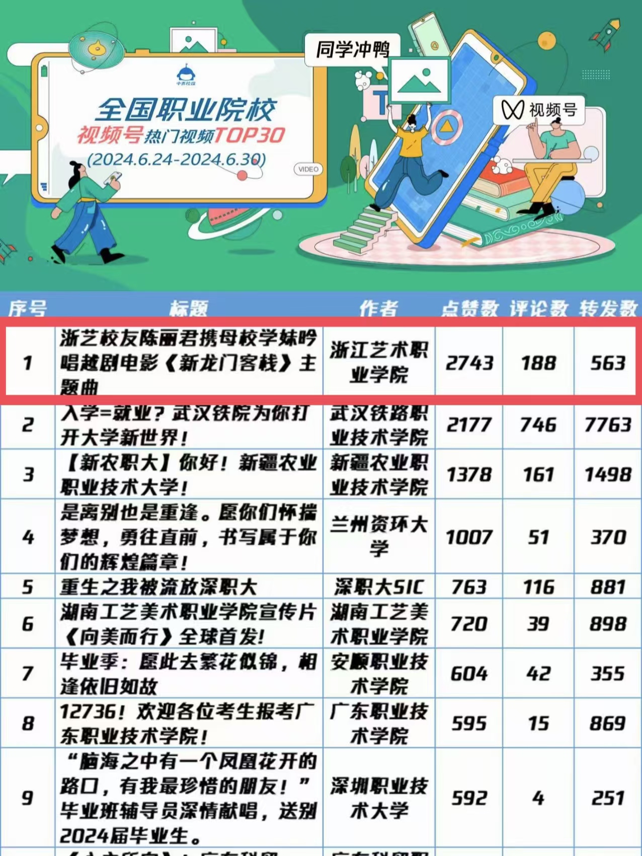 2024年全國職業(yè)院校視頻號熱門視頻TOP1