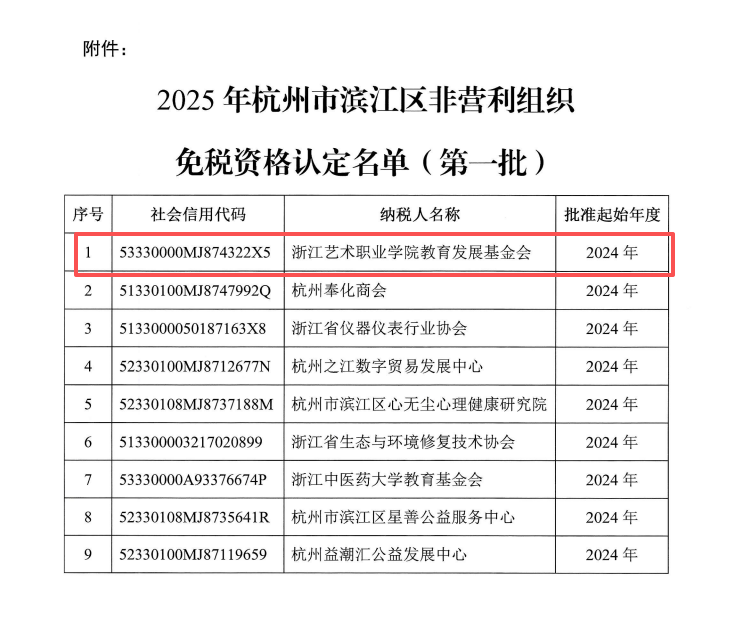 浙江藝術(shù)職業(yè)學(xué)院教育發(fā)展基金會(huì)獲批2025年度非營(yíng)利組織免稅資格