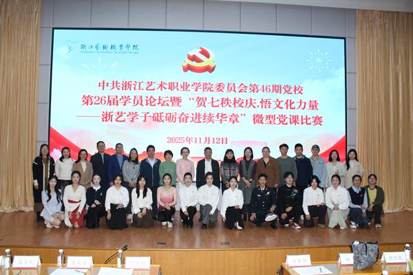 為慶祝建校七十周年,引領(lǐng)青年學子深刻感悟文化力量,11月12日晚,中共浙江藝術(shù)職業(yè)學院委員會第46期黨校第26屆學員論壇暨“賀七秩校慶·悟文化力量——浙藝學子砥礪奮進續(xù)華章”微型黨課比賽在圖書信息中心報告廳舉辦。