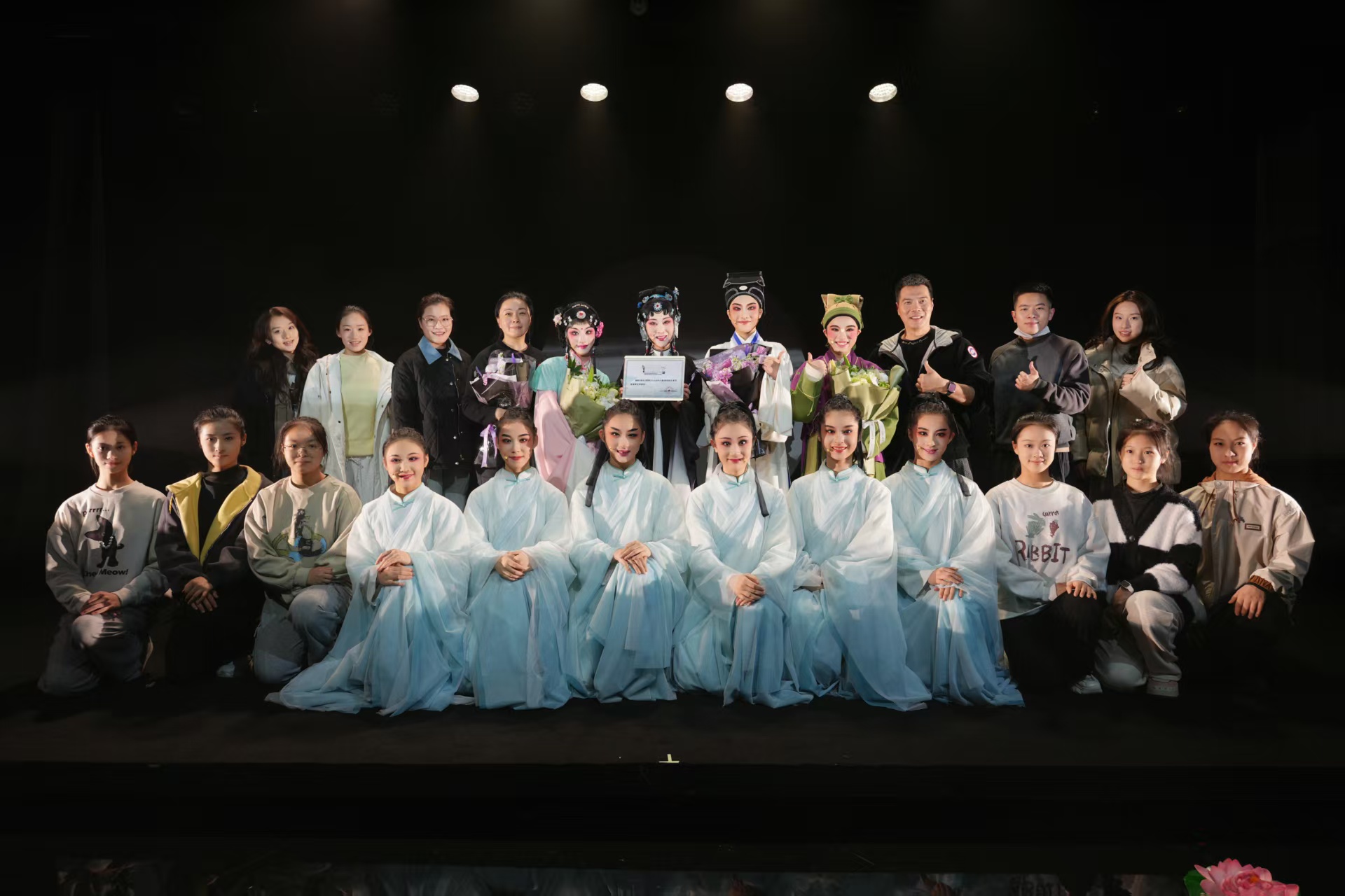 本場演出由戲曲表演師生聯(lián)袂登臺,徹底打破講臺與舞臺的壁壘,成功將教學(xué)作品推向市場舞臺,實(shí)現(xiàn)從課堂到劇場的無縫銜接。現(xiàn)場表演區(qū)與觀演區(qū)零距離互動,傳統(tǒng)越劇與現(xiàn)代劇場美學(xué)巧妙交融,以精湛技藝與深厚藝術(shù)表現(xiàn)力,全方位彰顯了學(xué)校“新演藝人才”培養(yǎng)的教學(xué)成果。